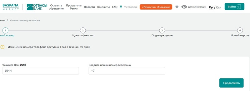 - Введите новый номер и пройдите идентификацию — укажите ИИН и новый номер.