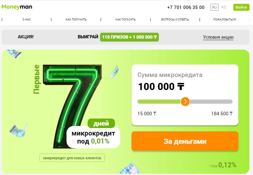 Манимен оказался очень удобным сервисом для получения быстрых денег, процесс занимает минимум времени. Первый заем на 7 дней под 0,01% в день, но учтите, это только если вернуть вовремя, ну т.е. именно через 7 дней. Или можно и позже, но с 8 дня уже будет большой процент. В общем уточняйте все условия перед тем как подписать договор, чтоб потом тут не жаловаться. Компания честно работает, на сайте есть все документы в разделе О нас. Единственный минус - да, деньги могут дойти на следующий день, но тут еще от банка зависит видимо. У меня так 1 раз было. Второй раз деньги сразу почти пришли на каспи.