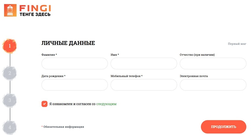 Чтобы зарегистрироваться в личном кабинете на Fingi.kz, нужно: