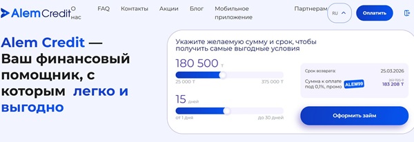 Личный кабинет на сайте AlemCredit работает полностью онлайн и предоставляет поддержку пользователям практически круглосуточно. Через аккаунт клиент может подать заявку на займ, отслеживать статус договора, оплачивать задолженность и получать уведомления о специальных предложениях.